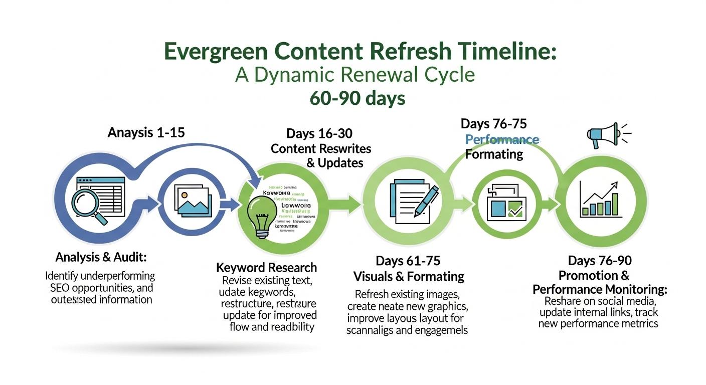 Consequently, marketers are best advised to treat every piece of evergreen content as having a built-in decay timer, optimising for a typical shelf life of around 90 days unless performance data indicates otherwise. This requires scheduling content audits proactively, refreshing high-value assets every 60 to 90 days, supporting pages semi-annually, and conducting annual reviews for more stable foundational topics. Building a cadence that fits operational capacity, balancing new content creation with a refresh workflow, is crucial to avoid backlog and ensure updates are substantive, incorporating new data, trends, and structural enhancements rather than superficial changes.