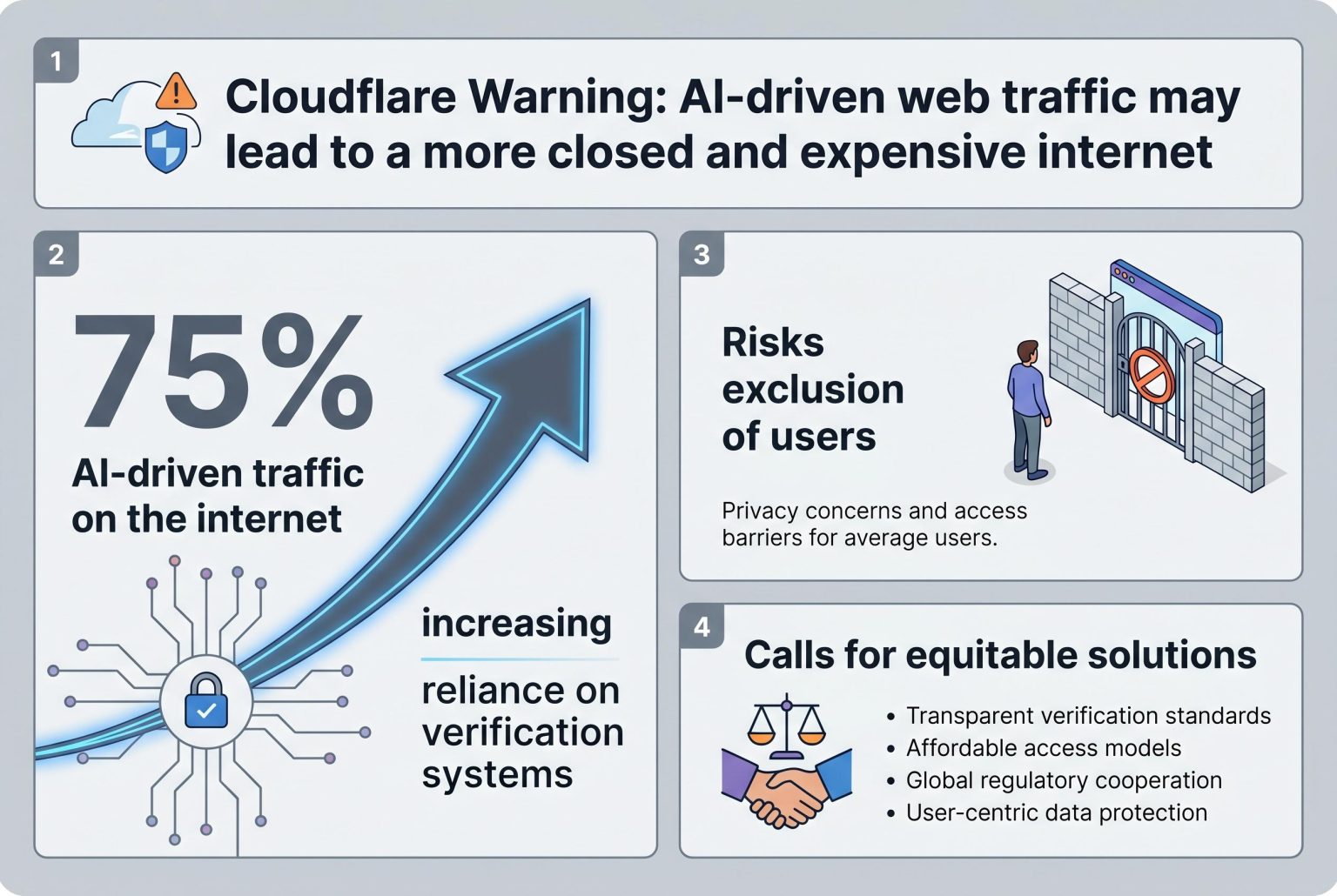 Cloudflare suggests that as AI blurs the line between human and automated access, the internet risks becoming more closed, with increased reliance on verification systems that may unintentionally exclude users, sparking calls for equitable solutions.