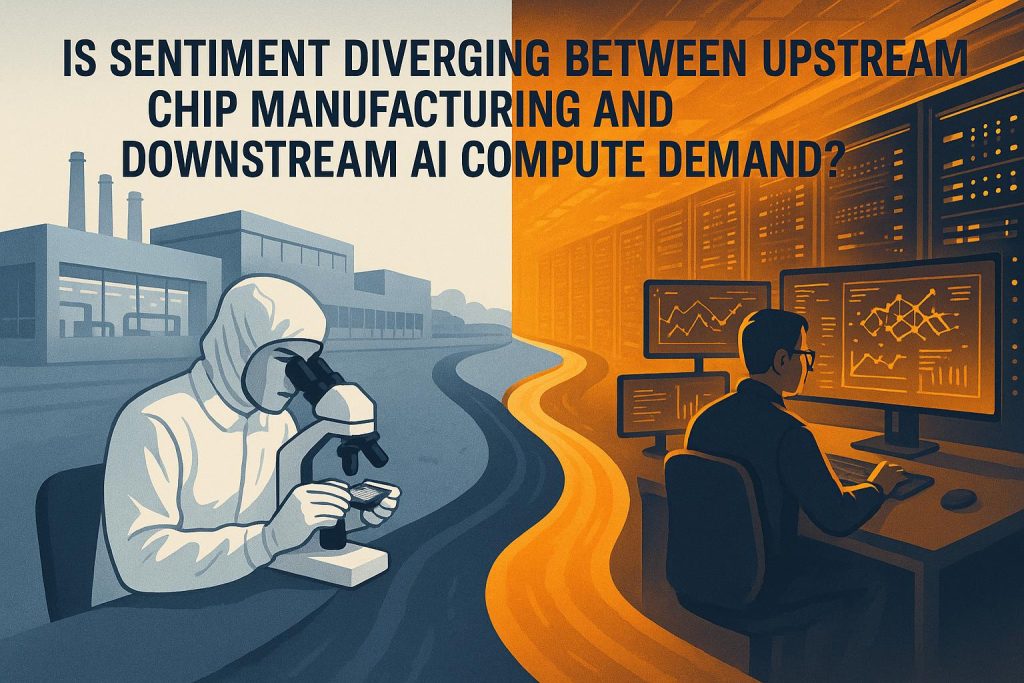 Downstream sentiment is decisively stronger than upstream sentiment, driven by record Nvidia data‑centre revenue of $51.2 billion in Q3 and multiple multi‑year hyperscaler commitments, which in other words gives downstream actors near‑term pricing power and deployment urgency. Upstream indicators show meaningful stress on memory, packaging and equipment lead times, which suggests upstream capacity investments carry timing and margin risk and therefore require staged exposure and contractual protections. For investors, this means favour downstream monetisation and GPU‑adjacent services while hedging upstream capex through packaging, financing structures and optionality.