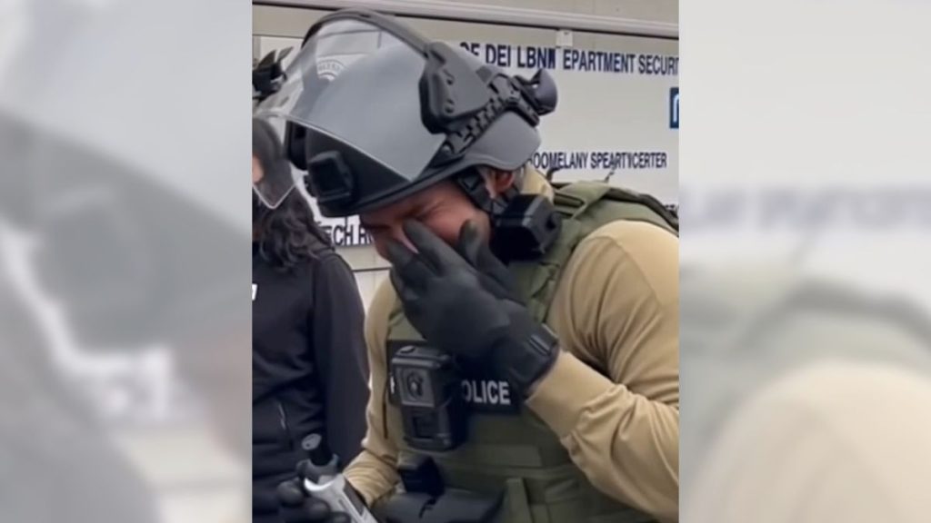 Technical analysis revealed numerous flaws that confirmed the video’s artificial nature. The pepper spray appeared to emanate from both of the agent’s hands, despite him only holding a canister in his right hand. When he raised his left hand, it was clearly empty. Additionally, the background featured nonsensical text reading “OF DEI LBNM EPARTMENT”—a common issue with AI generators that struggle to render coherent text within images.