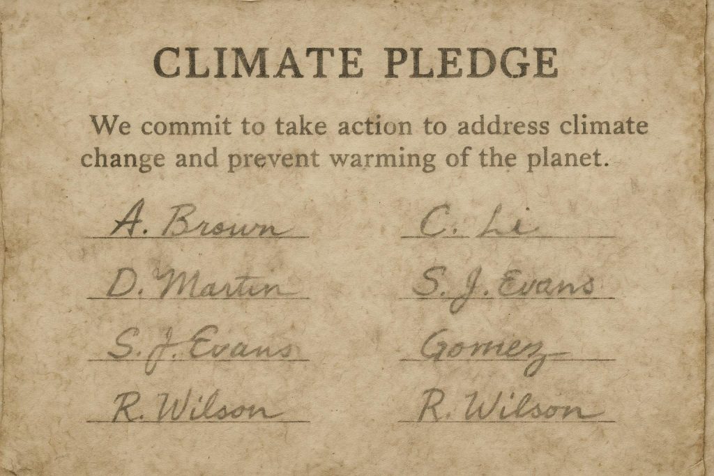 The narrative references recent reports from the United Nations and the World Meteorological Organization (WMO) regarding climate change and emissions. The WMO’s Greenhouse Gas Bulletin, released on 15 October 2025, highlights record CO₂ levels in 2024. ([public.wmo.int](https://public.wmo.int/media/news/carbon-dioxide-levels-increase-record-amount-new-highs-2024?utm_source=openai)) The United Nations’ report on climate action pledges of 64 countries was also released ahead of the COP30 summit in Brazil. These reports are recent and relevant, indicating a high freshness score.