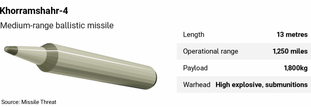 Experts believe the missiles used were most likely Khorramshahr-4 models, which could potentially reach parts of the UK if fitted with a lighter warhead to extend their range.