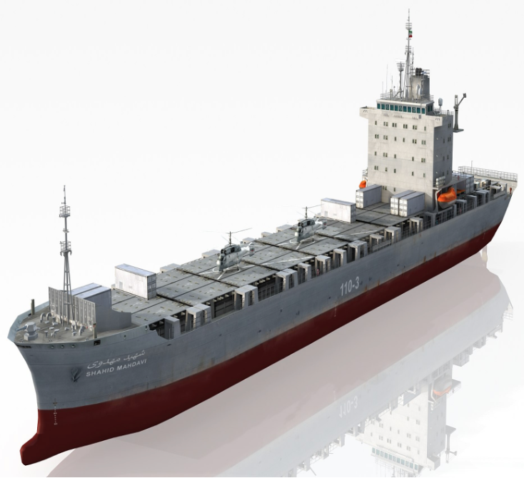 One of the Iranian vessels, IRIS Shahid Mahdavi (L110-3), is a floating forward base for the deployment of Shahed-136 fixed-wing drones and Fateh-110 short-range ballistic missiles by the Islamic Revolutionary Guard Corps (IRGC). The IRGC, which owns and operates the IRIS Shahid Mahdavi (L110-3), is a designated foreign terrorist organisation under United States law and by its allies.