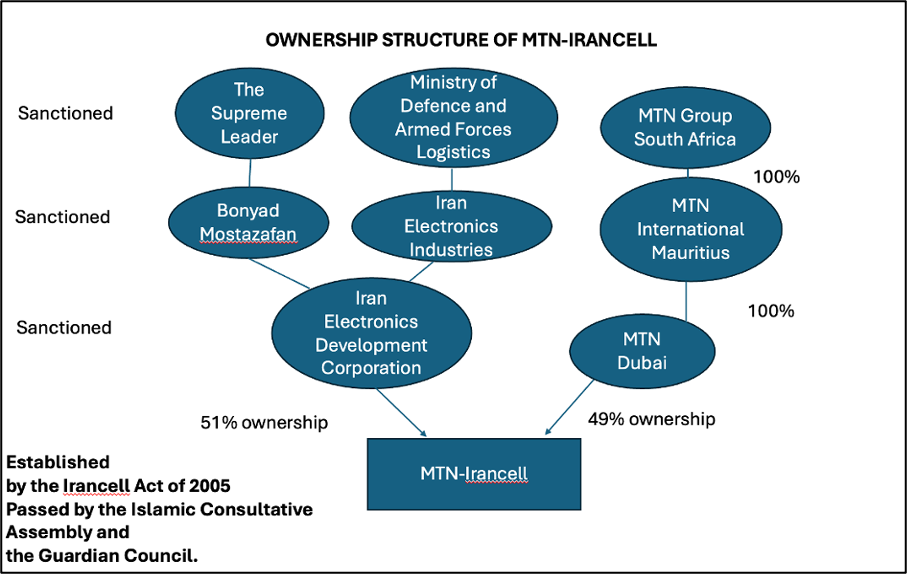 IEI controls MTN-Irancell through a subsidiary, the Iranian Electronic Development Corporation (IEDC), which owns 51 per cent of MTN-Irancell. The MTN Group owns the remaining 49 per cent.